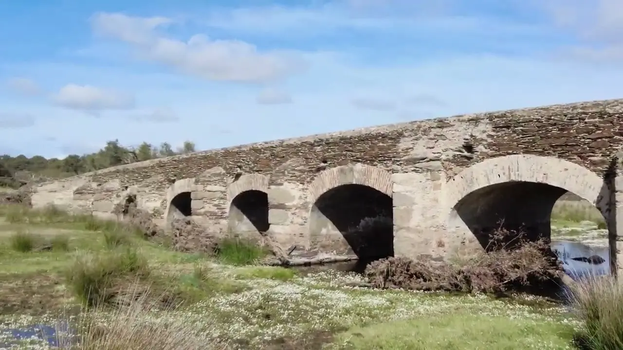 Es una ruta muy completa, porque al recorrerla disfrutaremos de gran parte de los paisajes de la Mancomunidad Sierra de Montánchez. Desde Torremocha iremos hacia Casas de Don Antonio, donde encontraremos un puente construido en el S. XIII, sustituyendo al anterior, sitio de paso del Camino de Santiago. Seguidamente, nos trasladaremos a Almoharín, donde se encuentra el Puente del Coto, de origen medieval. No podemos dejar de visitar el puente romano que se encuentra en el camino que lleva a la encina «Terrona», en el municipio de Zarza de Montánchez, con cuatro ojos y construido íntegramente de sillares. De ahí partiremos hacia Benquerencia. Y por último, en Botija se encuentran el «Puente del Verraco», construido en el siglo XIX y de gran longitud, y el «Puente Viejo», del siglo XVII, con marcas de canteros tallados en los sillares.